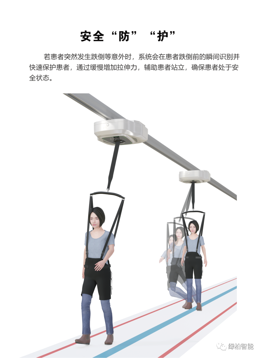 會議過程中,綠柏展位所展出的智能康復(fù)設(shè)備受到了眾多參會者的關(guān)注,尤其是步行反饋自適應(yīng)康復(fù)系統(tǒng),作為國內(nèi)唯一一款可實現(xiàn)實時動態(tài)減重和防跌倒安全保護的步行訓(xùn)練系統(tǒng),其吸引了一眾參會學(xué)者和專家前來體驗。