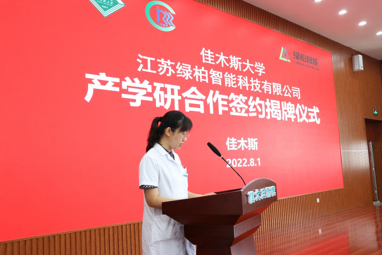 2022年8月1日上午,江蘇綠柏智能科技有限公司與佳木斯大學(xué)產(chǎn)學(xué)研合作簽約揭牌儀式在佳木斯大學(xué)康復(fù)醫(yī)學(xué)院多功能廳舉行。